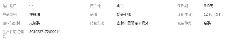 功夫小鸭 黑芝麻核桃油100ml瓶装 儿童食用油 冷榨