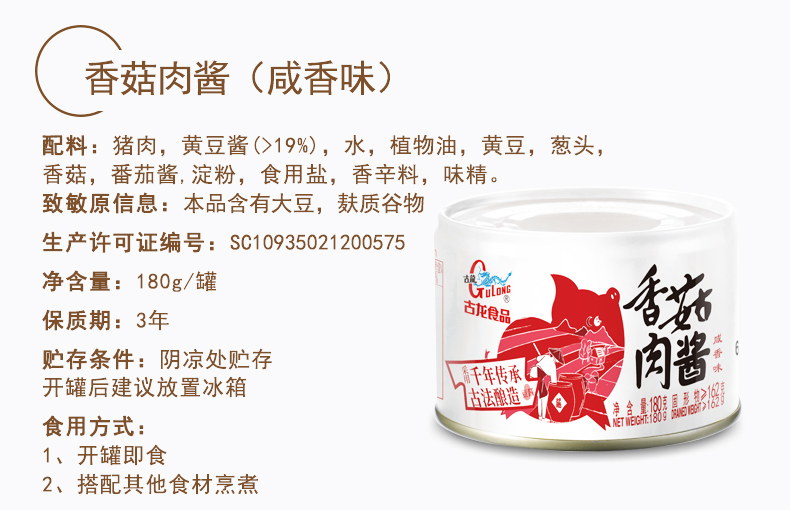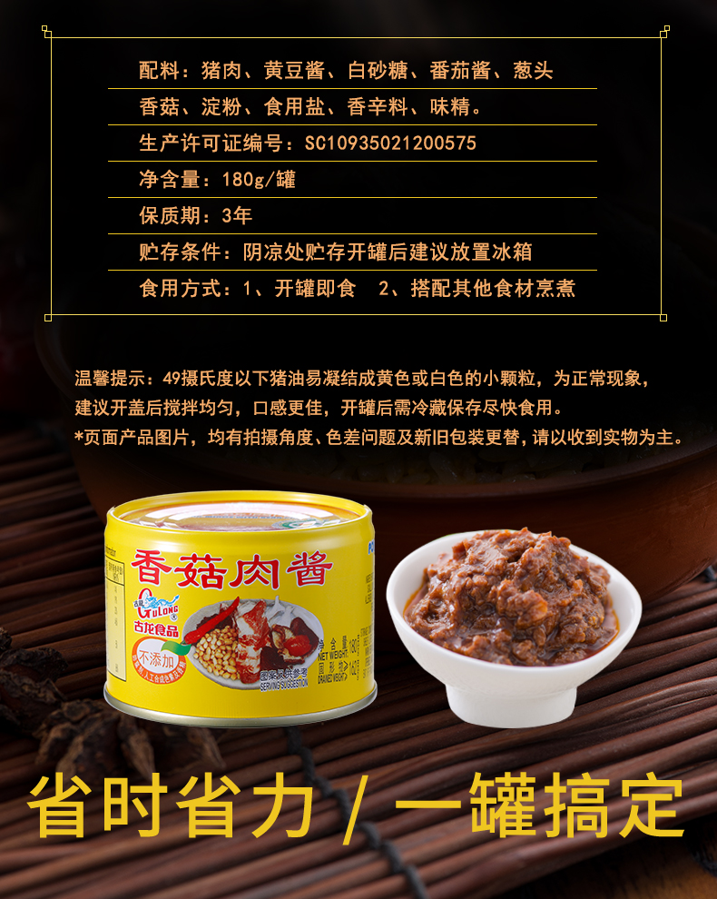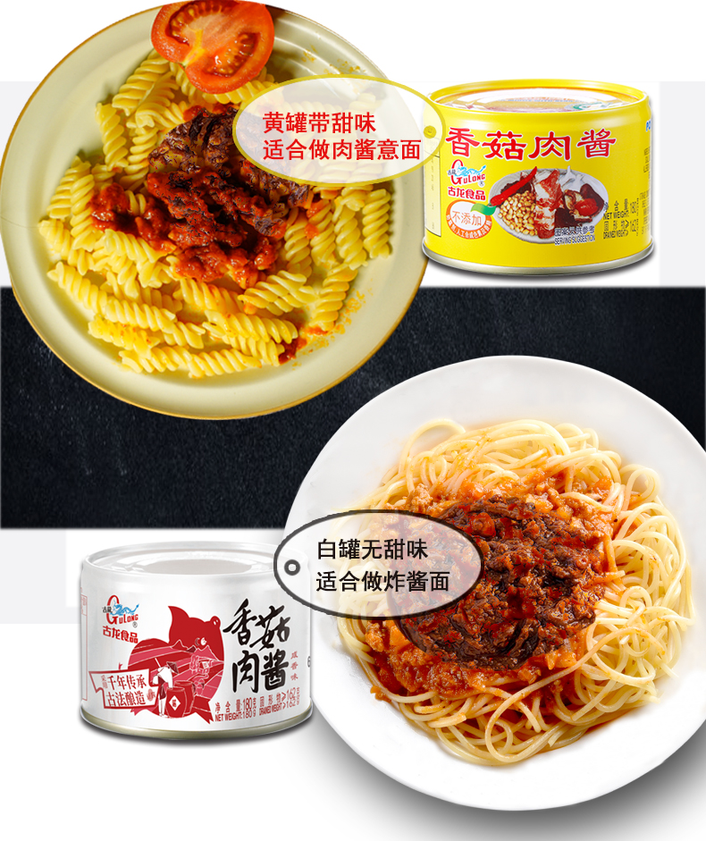 古龙食品香菇肉酱罐头熟食意大利面拌面酱炸酱面酱下饭调味180g*6