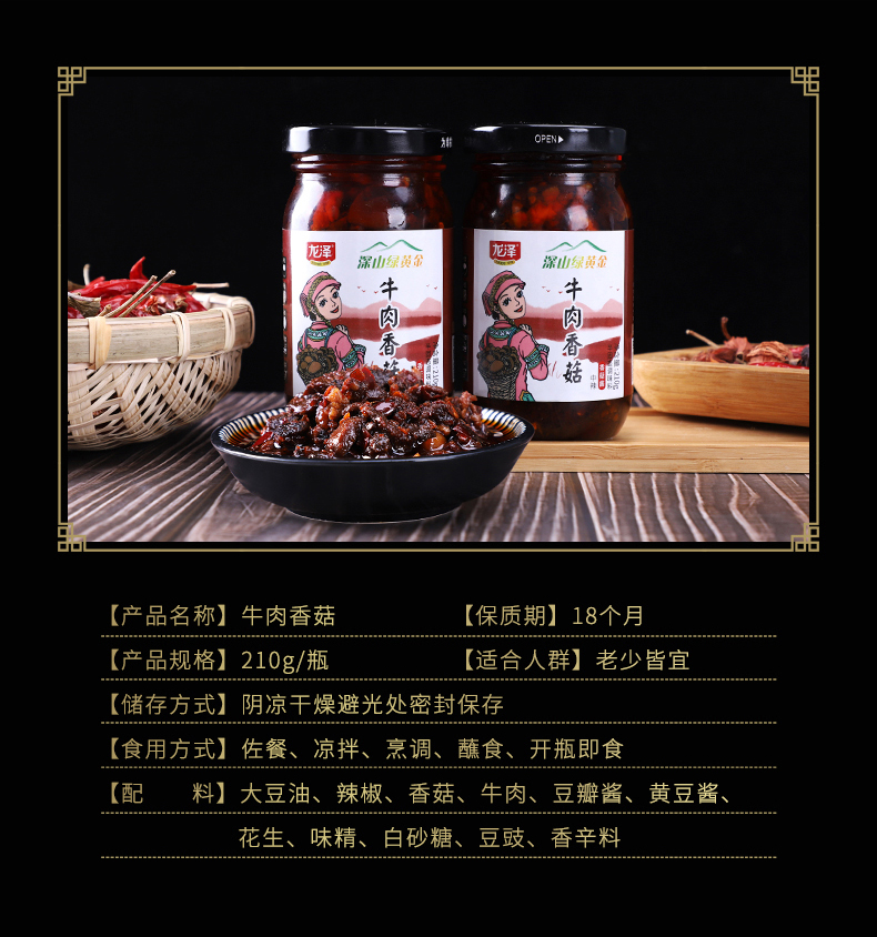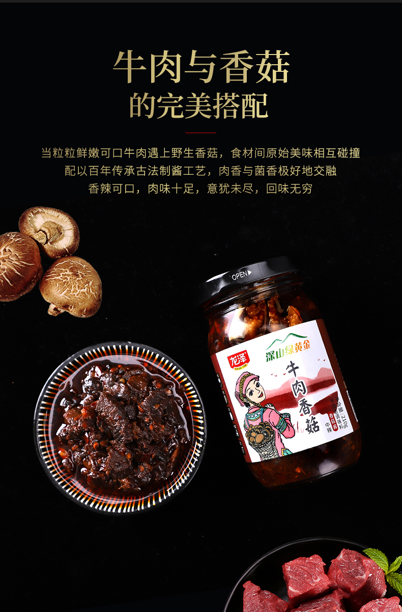龙泽酱园香菇牛肉酱原调味香辣拌饭面条蘑菇暴下饭夹馍佐料辣椒酱