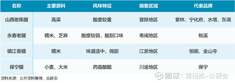 食醋的分类更为复杂,且极具地域色彩。目前食醋共分为四大类,也称中国四大名醋,分别是山西老陈醋、镇江香醋、四川保宁醋和福建永春老醋。出于生产原料、工艺以及自然条件等因素,各产区的食醋口味存在着明显的区别,各自的消费者已经在长年累月的过程中培养出了独特的消费偏好,且对于不同种类的食醋辨识能力较强。这就导致了食醋企业大多为区域性企业,较难进行全国化的扩张。
