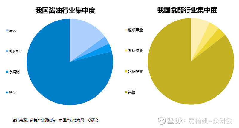 因此食醋行业的集中度会显著低于酱油行业。前瞻产业研究院数据显示,我国酱油行业CR3占比约为21%,龙头海天味业的市场份额约为15%。而我国食醋行业CR3占比仅为14.44%,龙头恒顺醋业的市占率仅为7%。