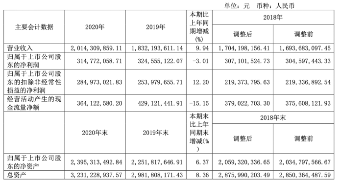 年报综评:恒顺醋业2020年营业收入20.14亿元,同比上涨9.94%;归属于上市公司股东净利润3.14亿元,同比下降3.01%;经营活动产生的现金流净额3.64亿元,同比下降15.15%。